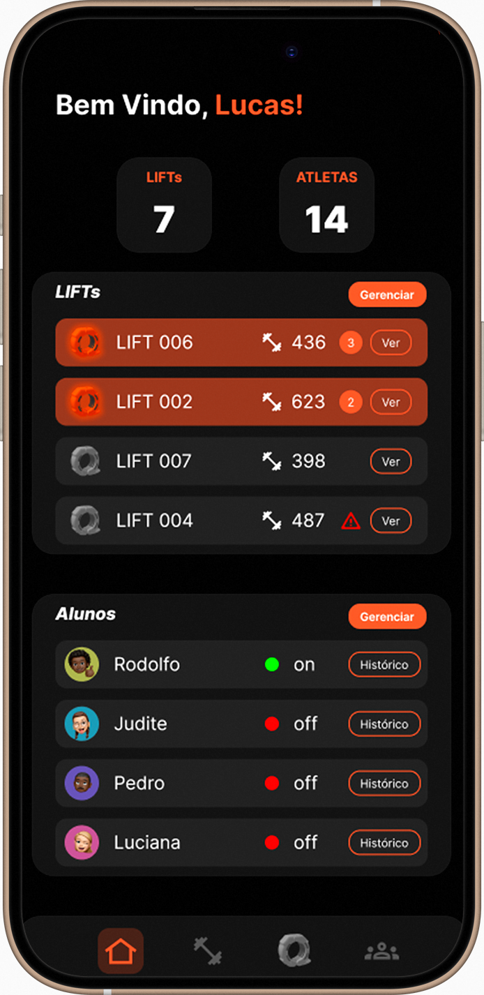 Com o Lift, cada repetição é registrada automaticamente, fornecendo dados precisos de velocidade, potência e carga.